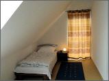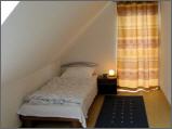 In der oberen Etage finden Sie neben einem Bad (Toilette, Dusche Waschbecken, Handtuchhalter) zwei durch einen Flur getrennte Schlafzimmer mit Dachschrägen.